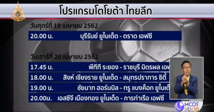 ข่าวเที่ยง (กีฬา) วันศุกร์ที่ 19 เมษายน 2562