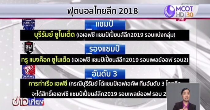 ข่าวเที่ยง (กีฬา) วันอังคารที่ 9 ตุลาคม 2561