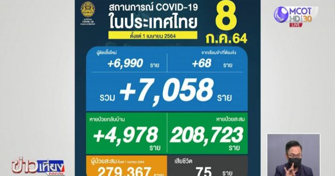 ข่าวเที่ยง (ช่วงที่ 1) วันพฤหัสบดีที่ 8 กรกฎาคม 2564 เฒ่าวัย 66 ถูกแทงดับคาวงเหล้า เหตุหึงเมีย ไทยติดเชื้อโควิดพุ่ง 7,058 ราย ตาย 75 ราย กลัวพลาดตรวจเชื้อ ต้องกางเต็นท์นอนรอกลางสายฝน ลุ้น! ล็อกดาวน์ หลังโควิดแรง-สายพันธุ์เดลตาแพร่ กทม. สธ.แนะ 6 ข้อปฏิบัติ หากผู้ติดเชื้อต้องเดินทางข้ามจังหวัด