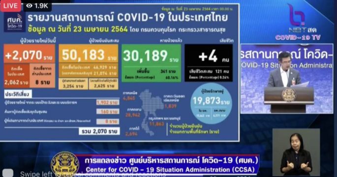 ข่าวเที่ยง (ช่วงที่ 1) วันศุกร์ที่ 23 เมษายน 2564 ภูเก็ตวันแรกตรวจคัดกรองโควิดพบติดเชื้อ 2 ราย โคราชพบเสียชีวิตจากโควิดรายแรก ข้อมูลการฉีดวัคซีน Covid-19 ของไทย โควิดพุ่ง 2,070 ราย ตายเพิ่ม 4 ราย ยันไม่มีเคอร์ฟิวใน กทม.