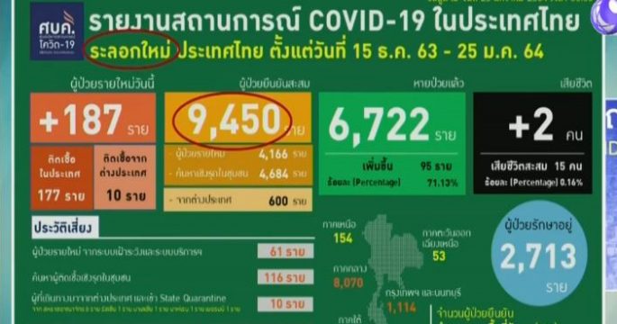 ข่าวเที่ยง ช่วงที่ 1 วันจันทร์ที่ 25 มกราคม 2564 ปส.จับชาวไต้หวันลักลอบผสมเคนมผง บุกรวบนักพนันกลางวงไฮโล ป่วยโควิดรายใหม่ 187 ราย เสียชีวิตเพิ่ม 2 ราย วุ่นวาย! ขณะนำตัวแรงงานเมียนมาป่วยออกมารักษา ค้นบ้านขบวนการลอบขนโรฮีนจาเข้าประเทศ บิ๊กคลีนนิ่งตลาดกลางกุ้งก่อนจะเปิดปลายเดือน เร่งล่า! คนร้ายบุกเดี่ยวชิงเงินธนาคาร 6 แสน จุดประทัด-ตะโกนไล่ช้างป่าเข้าใกล้บ้านเรือน