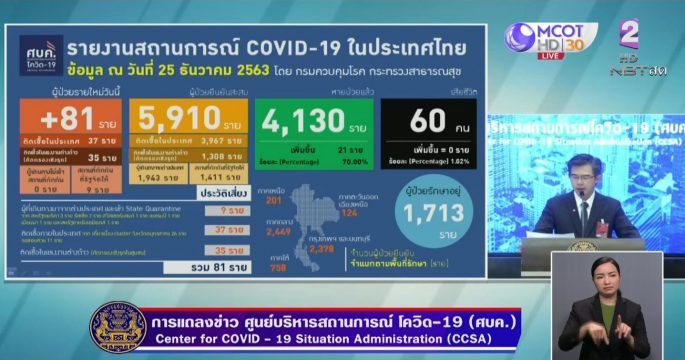 ข่าวเที่ยง (ช่วงที่ 1) วันศุกร์ที่ 25 ธันวาคม 2563• ป่วยโควิดรายใหม่ 81 ราย• ทูตเมียนมาเยี่ยมแรงงานใน จ.สมุทรสาคร• เร่งแก้ปัญหาชาวบ้านโวย ไม่ให้ตั้ง รพ.สนาม• รมว.มหาดไทย ชี้ต้องเร่งทำความเข้าใจ จัดตั้ง รพ.สนาม