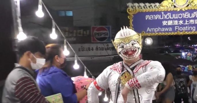 เรื่องพลบค่ำ ช่วงที่ 1 วันศุกร์ที่ 12 พฤศจิกายน 2564 พักรบชั่วคราว “หนุมาน-ทศกัณฐ์” เที่ยวตลาดน้ำอัมพวา กำภู-รัชนีย์ ตะลุยตลาดน้ำดอนหวาย