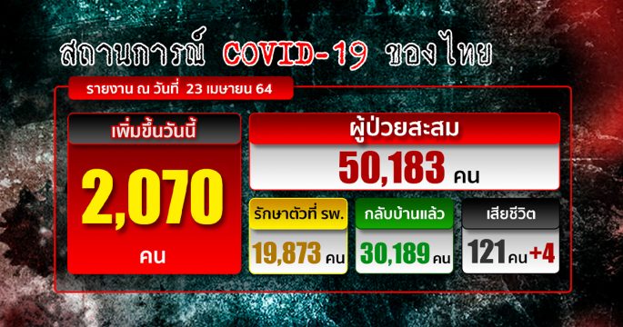 เรื่องพลบค่ำ ช่วงที่ 2 วันศุกร์ที่ 23 เมษายน 2564 • สถานการณ์โควิด-19 ในประเทศไทย• สธ.ห่วงปัญหาเตียงไม่พอ• 2อาม่าติดโควิดเข้ารักษาใน รพ.แล้ว ปลอดภัย• ชิลีสั่งปรับคลินิกใช้วัคซีนสุนัขฉีดคน อ้างกันโควิดได้
