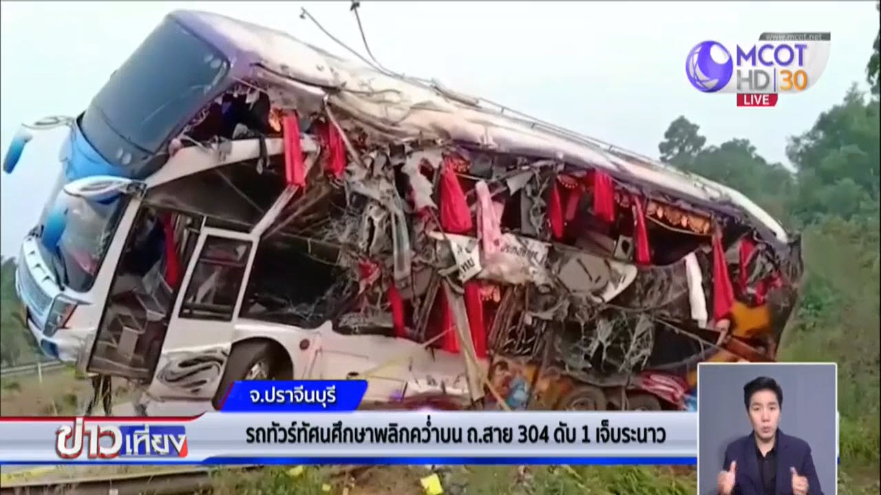 - รถทัวร์ทัศนศึกษาพลิกคว่ำบน ถ.สาย 304 ดับ 1 เจ็บระนาว