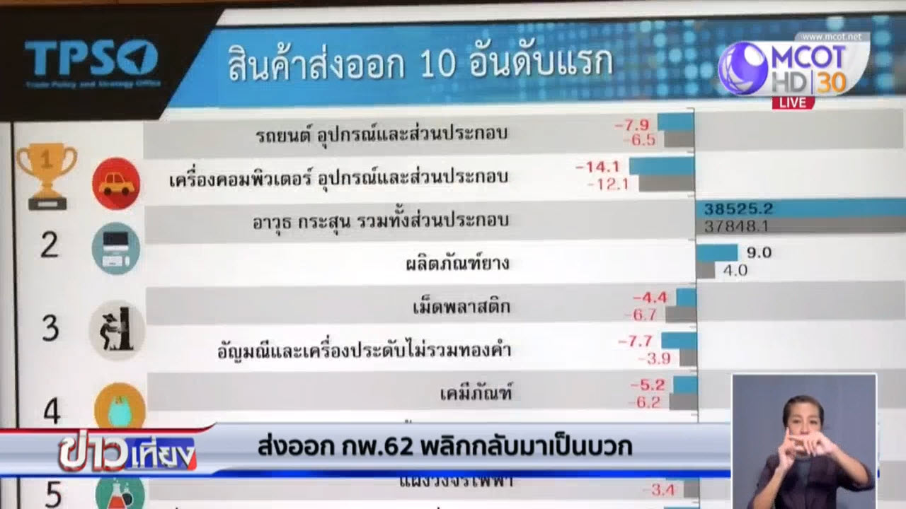 - ส่งออก ก.พ.62 พลิกกลับมาเป็นบวก