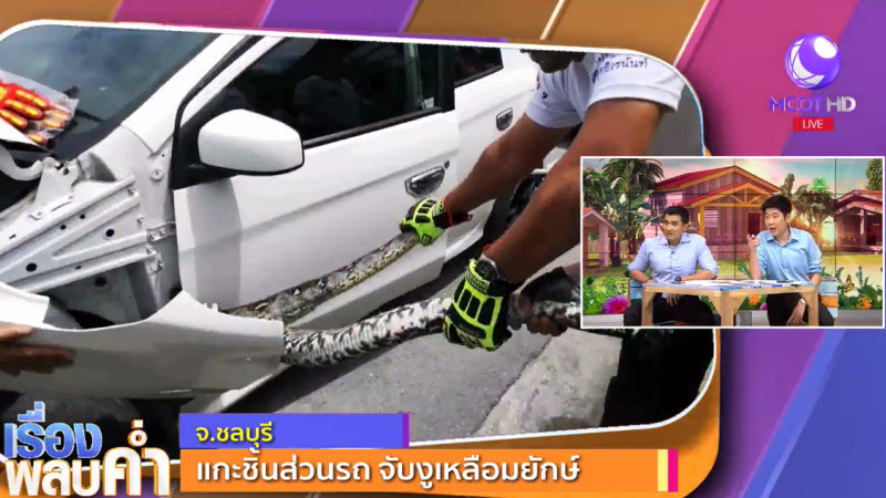• แกะชิ้นส่วนรถ จับงูเหลือมยักษ์ จ.ชลบุรี
