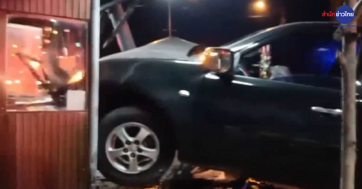 ► กระบะเสียหลักข้ามเกาะกลางถนนพุ่งชนตู้ขายตั๋ว