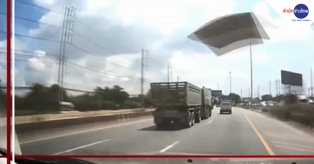 • แผ่นเหล็กปลิวใส่หน้ารถเต็มแรง