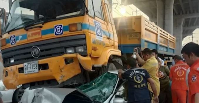 - พ่วง 18 ล้อเบรกแตกทับเก๋งตาย 1 เจ็บ 2