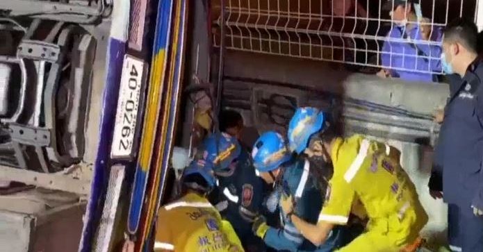 - รถบัสหมอลำปีนแบริเออร์คว่ำ-ตาย 2 เจ็บ 28
