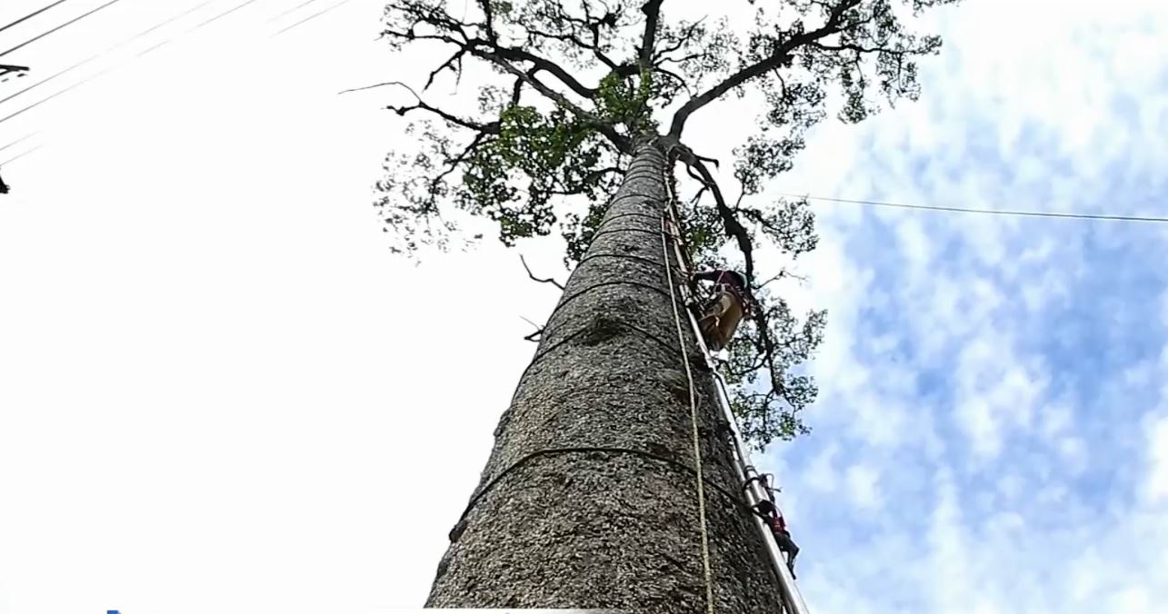 • ปีน 50 เมตร ตัดแต่งกิ่งต้นยางนา อายุกว่า 100 ปี
