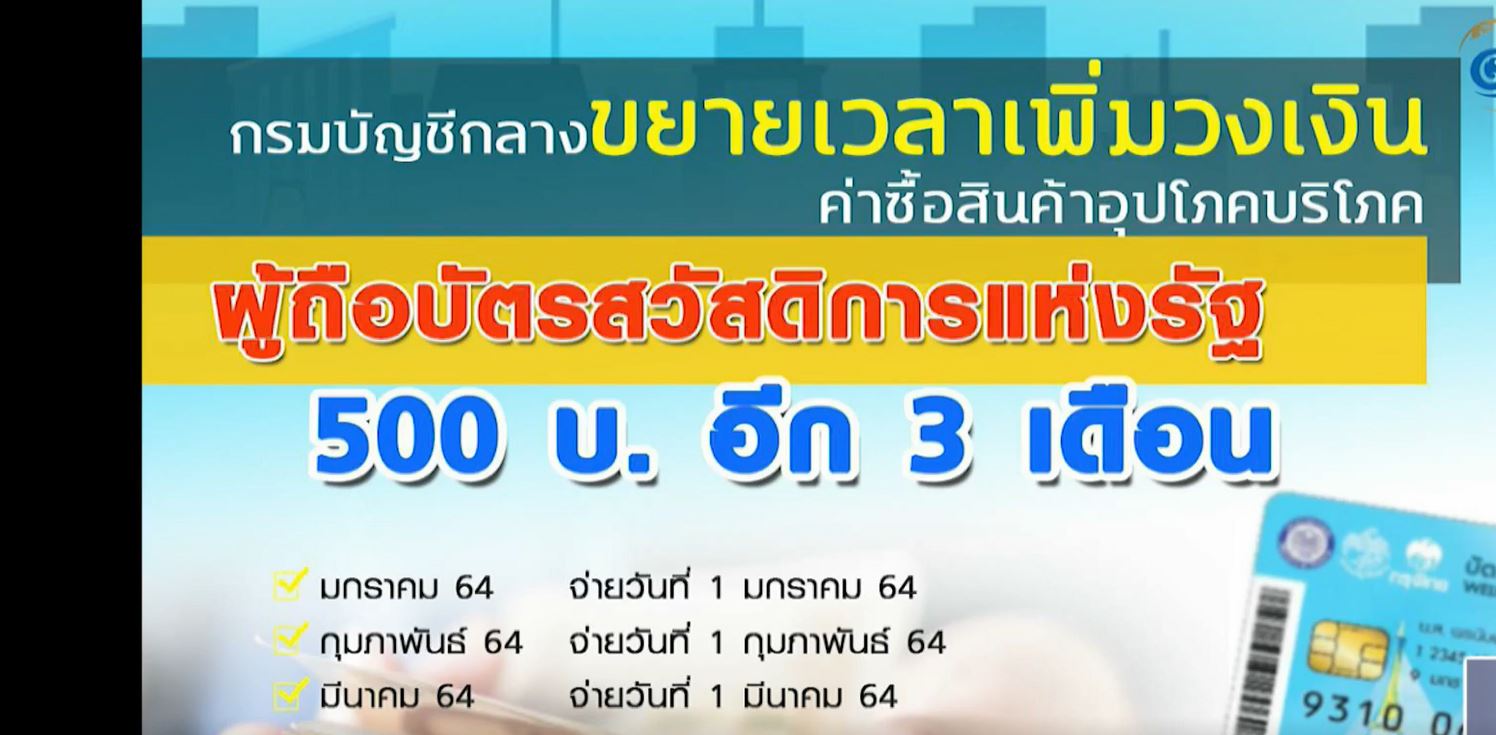 • เพิ่มเงินบัตรสวัสดิการแห่งรัฐ 500 บาท ม.ค.-มี.ค.64