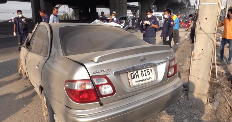 • เก๋งชน จยย. ฟาดเสาไฟ ดับ 1 เจ็บ 1
