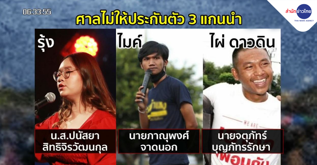 ► ศาลไม่ให้ประกัน 3 แกนนำราษฎร คดีชุมนุมสนามหลวง