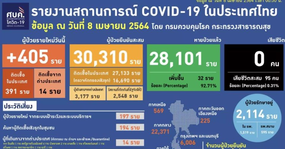 - ติดเชื้อโควิด-19 รายใหม่ 405 ราย