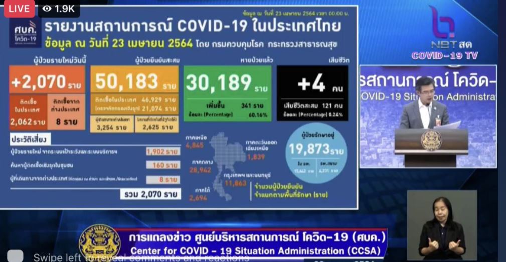 - โควิดพุ่ง 2,070 ราย ตายเพิ่ม 4 ราย ยันไม่มีเคอร์ฟิวใน กทม.