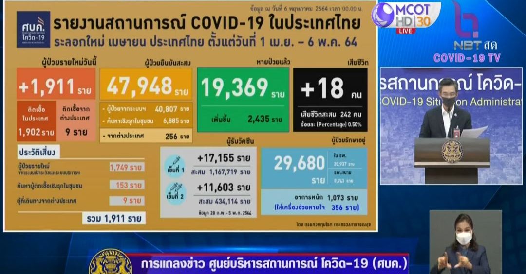 - ผู้ป่วยใหม่ 1,911 ราย ตาย 18 ราย