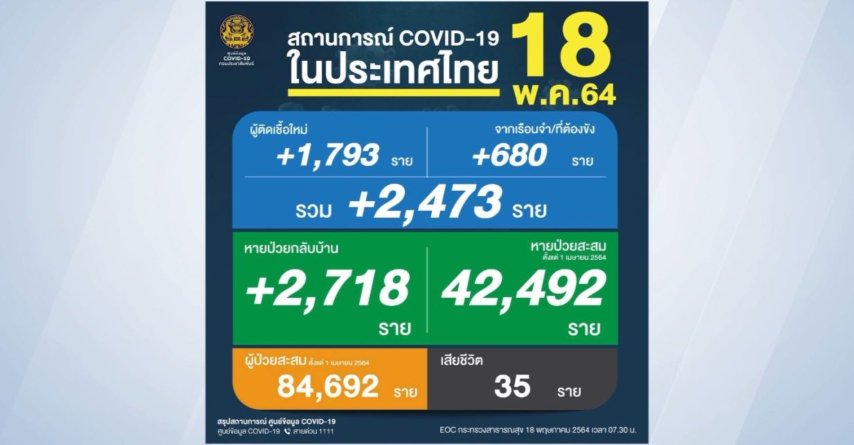 - ไทยมีผู้ติดเชื้อโควิดเพิ่ม 2,473 คน เสียชีวิต 35 คน