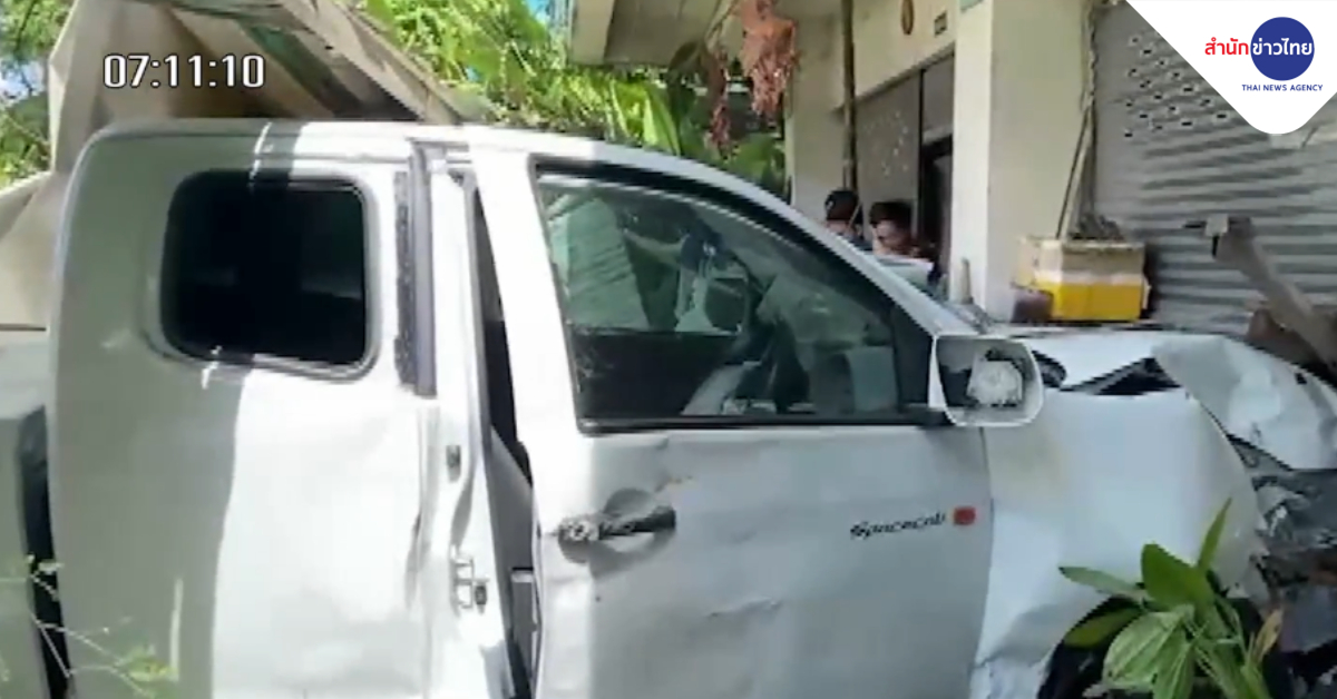 • กระบะเสียหลักพุ่งชนบ้านพังยับ