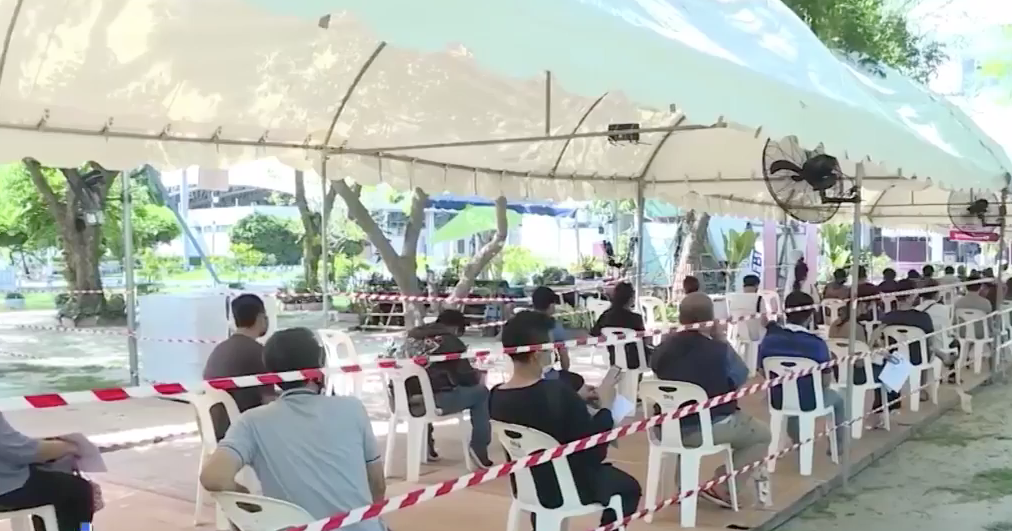 – นอกตากฝนรอคิวตรวจหาเชื้อโควิด