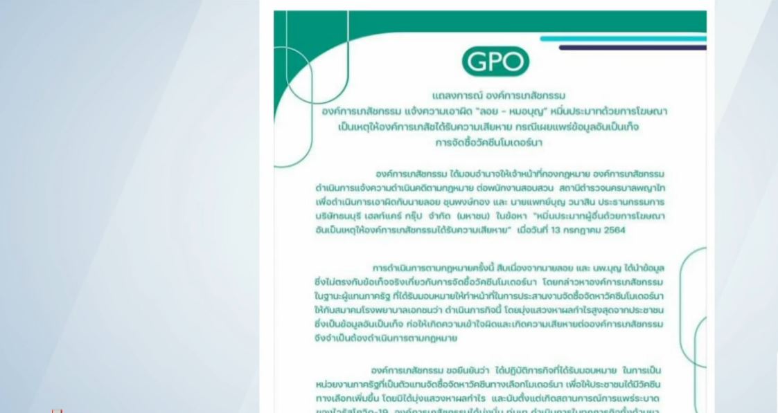 • อภ.แจ้งความ “ลอย-หมอบุญ” หมิ่นประมาทปมวัคซีนโมเดอร์นา