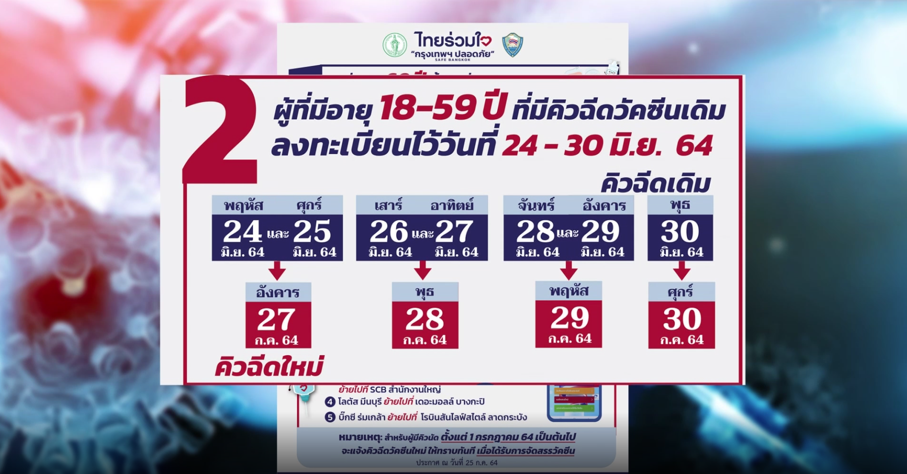 • “ไทยร่วมใจ” นัดฉีดวัคซีนกลุ่ม 18-59 ปี ได้คิวใหม่ 27-30 ก.ค.นี้