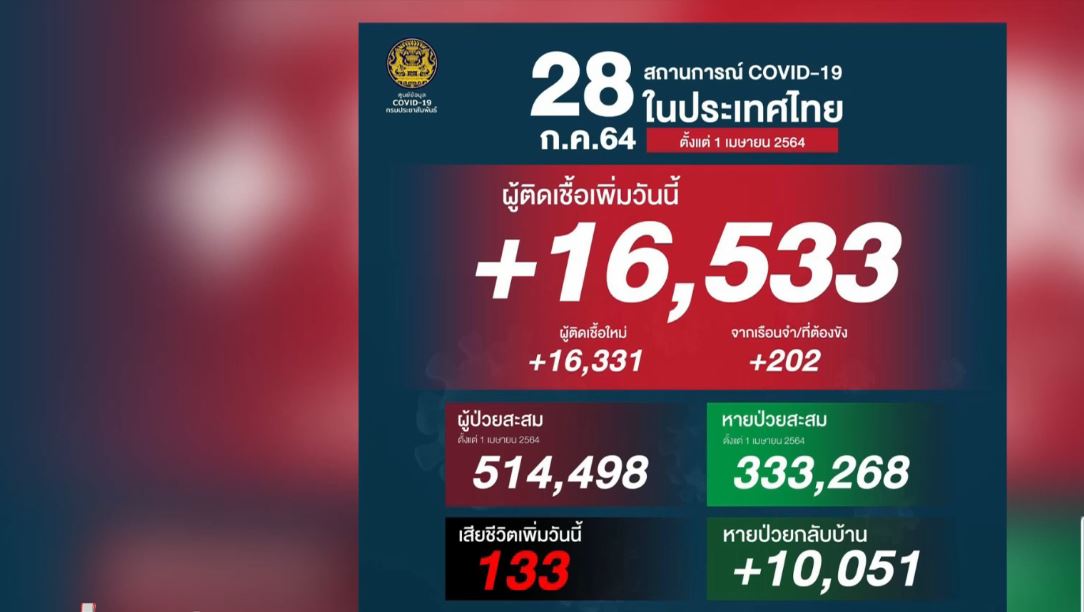 • ยอดติดเชื้อรายวันทุบสถิติ ทะลุ 16,000 เสียชีวิต 133 คน