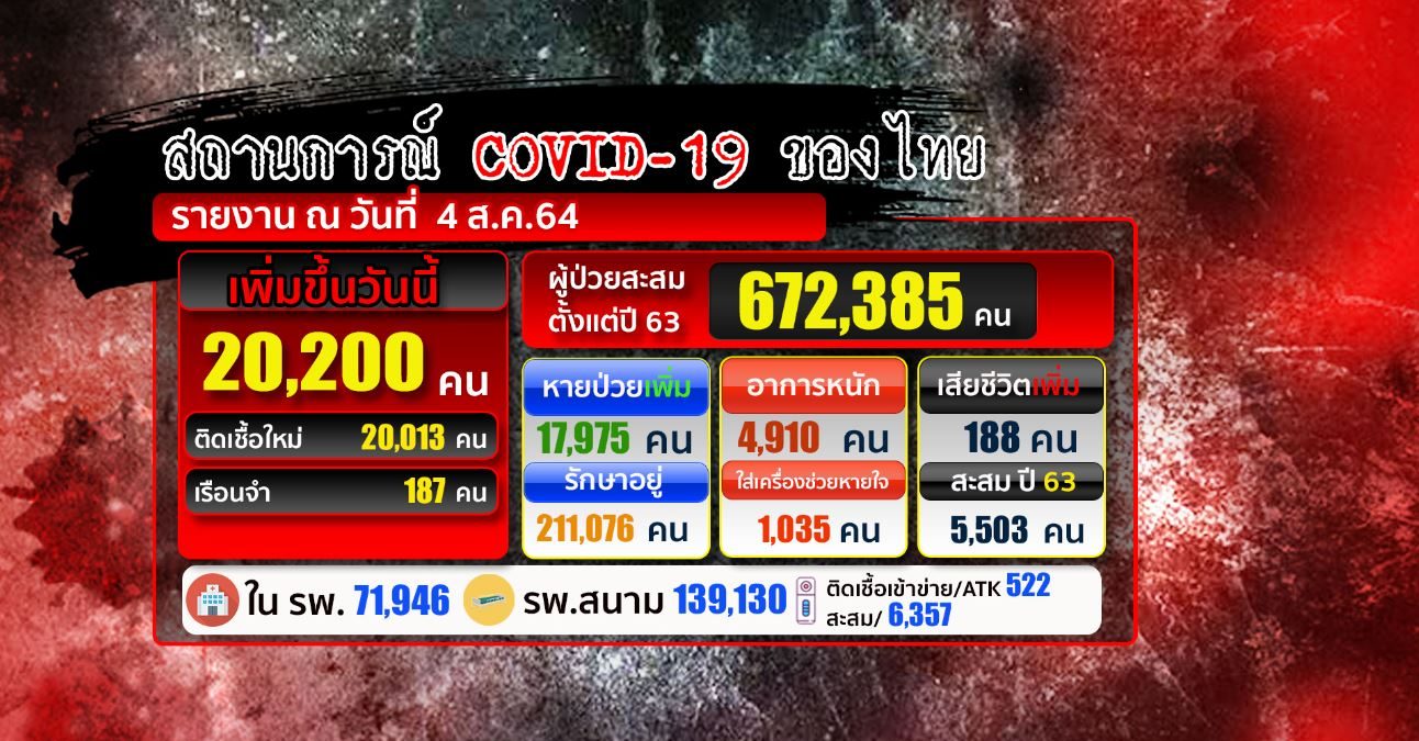 - นิวไฮ! ยอดติดเชื้อทะลุ 2 หมื่นราย เสียชีวิตเพิ่ม 188 คน