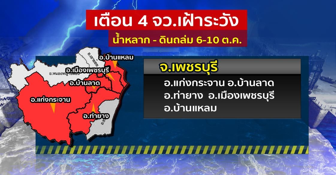 - เตือน 4 จว.เฝ้าระวังน้ำหลาก-ดินถล่ม 6-10 ต.ค.