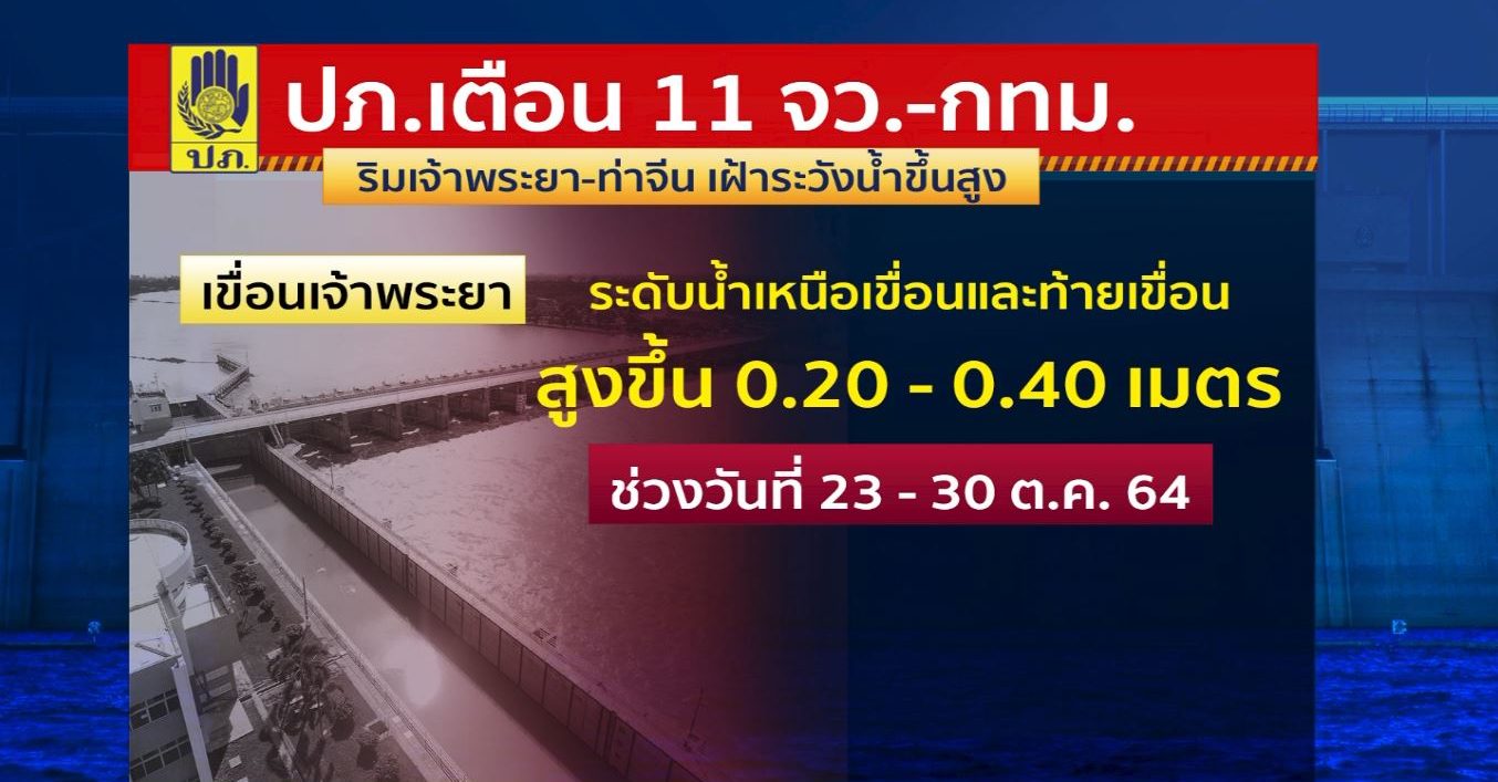 - ปภ.เตือน 11 จว.-กทม. ริมเจ้าพระยา-ท่าจีน เฝ้าระวังน้ำขึ้นสูง