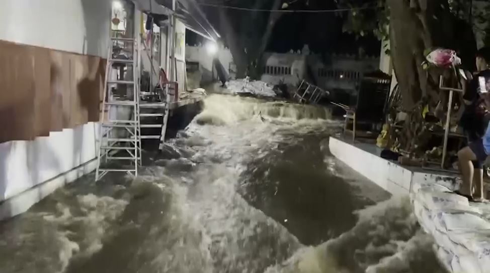 - น้ำทะลุกำแพงวัดกลางเมือง เร่งอุดวุ่นทั้งคืน