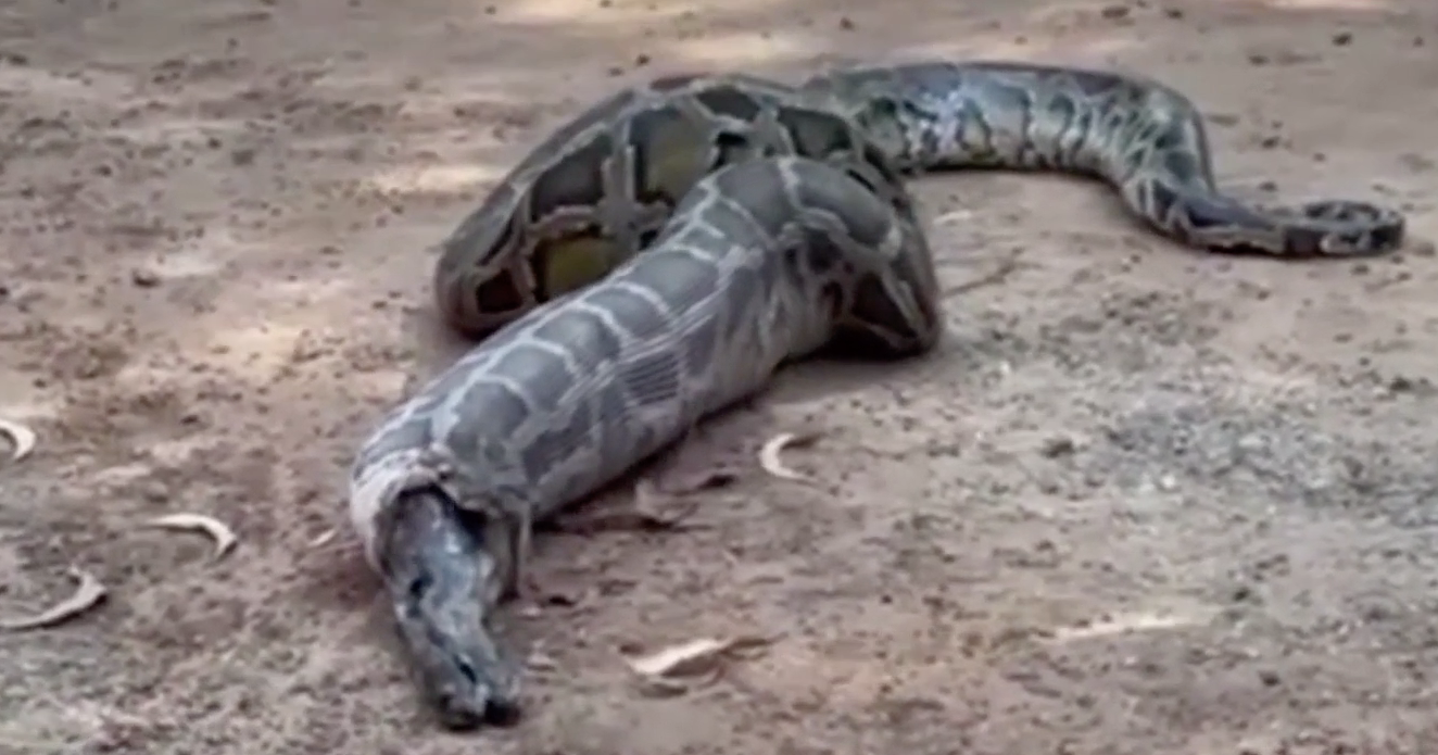 – งูหลามตัวใหญ่ติดประตูรั้ว ขย้อนเเมวเป็นของเเถม