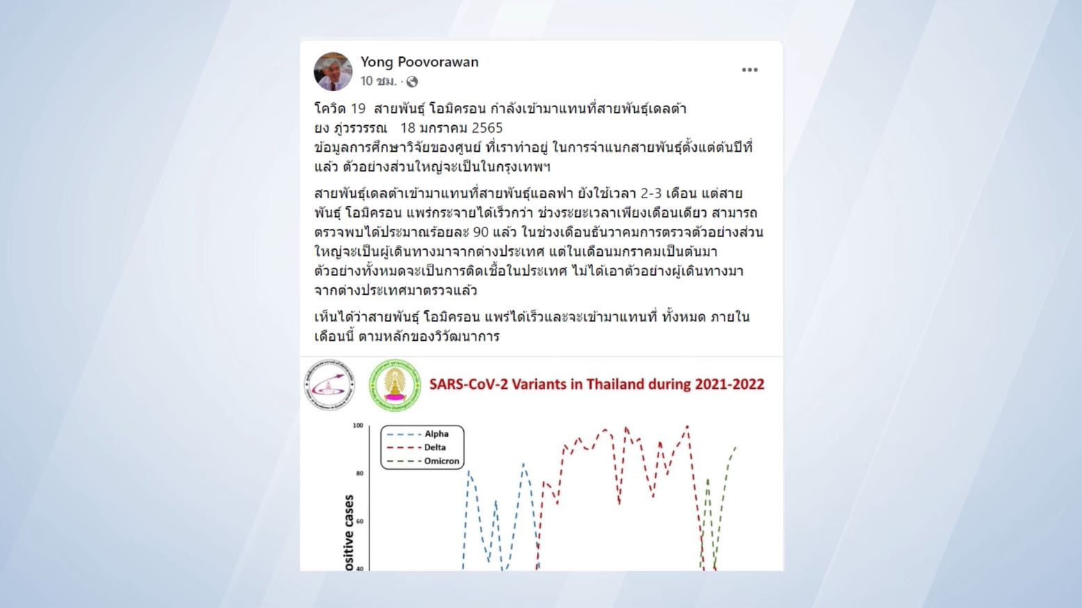 • หมอยง ระบุ โอมิครอน มาแทนที่เดลตาภายในเดือนนี้