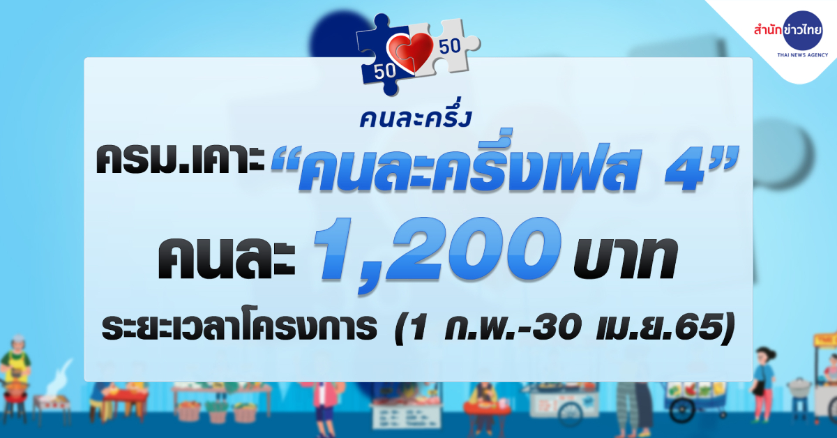• ครม.ไฟเขียว “คนละครึ่ง เฟส 4” คนละ 1,200 บาท