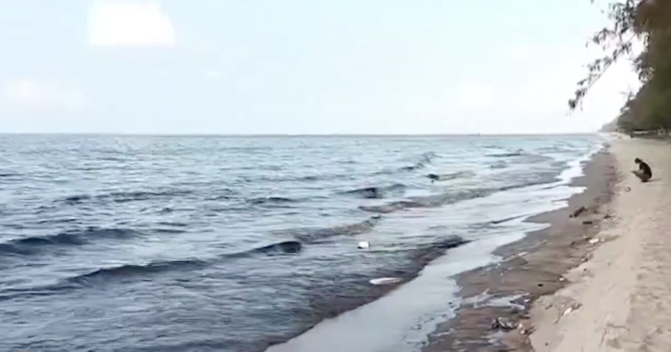– คราบน้ำมันเกยหาดแม่รำพึงตามเวลา ลักษณะเป็นฝุ่นขี้เถ้าน้ำมัน