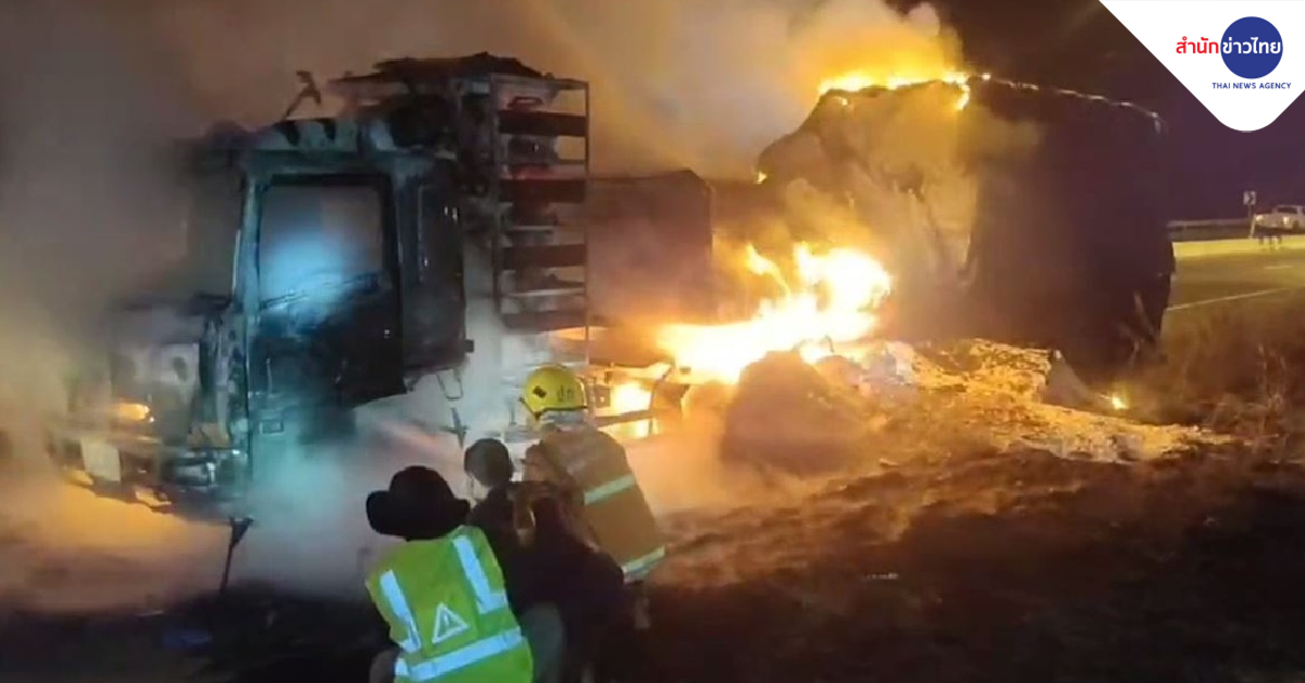 • ไฟไหม้รถพ่วงบรรทุกแป้งมันวอดทั้งคัน
