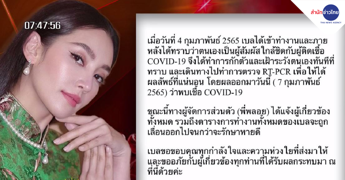 • “เบลล่า ราณี” ขออภัยทุกคน หลังติดเชื้อโควิด-19