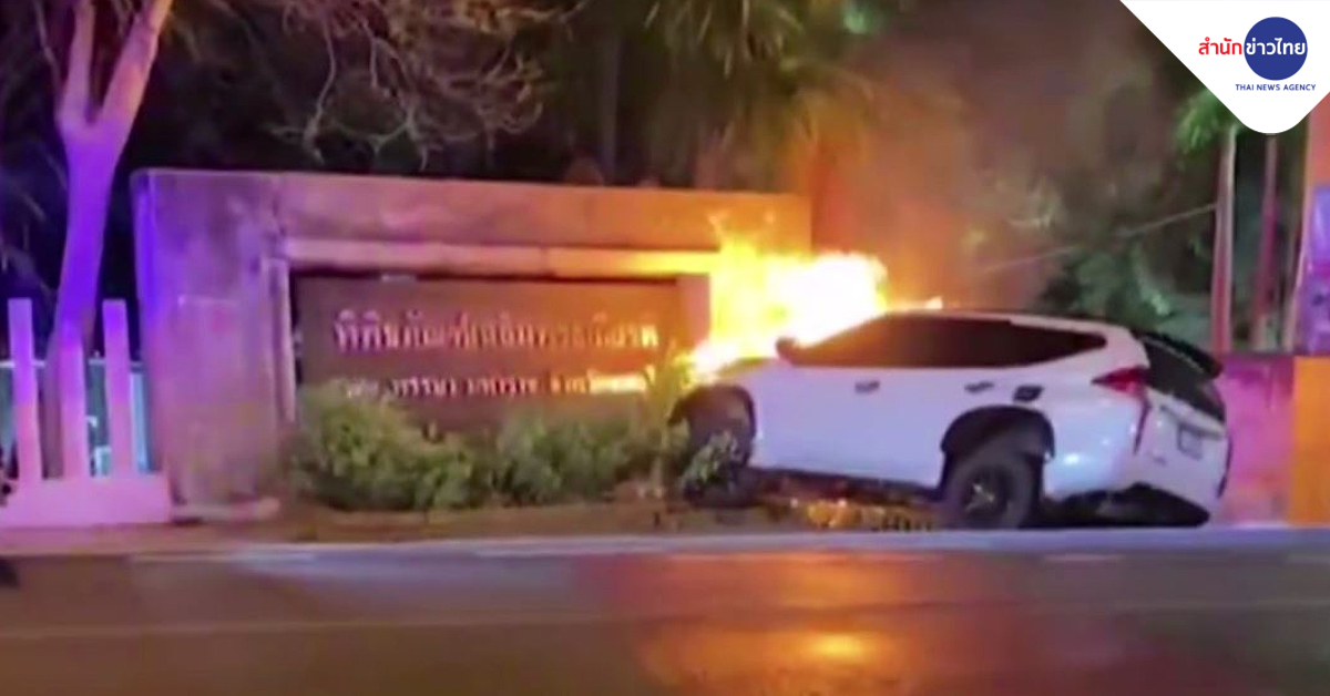• หนุ่มใหญ่ซิ่งรถกลับบ้านพุ่งชนกำแพงไฟลุกท่วม
