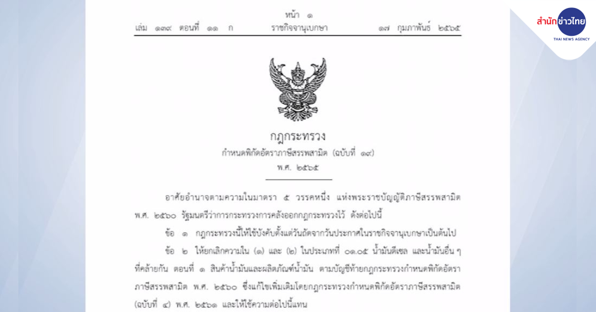 • ราชกิจจาฯ ประกาศลดภาษีน้ำมัน มีผลพรุ่งนี้ (18 ก.พ.)
