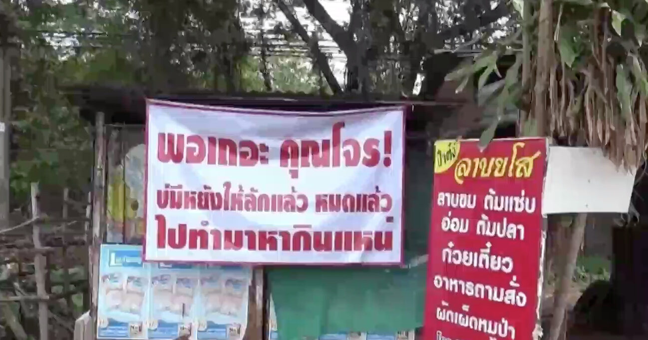 – ร้านลาบยโสปลดป้ายประชดโจร ตำรวจติดตู้แดงให้เเทน