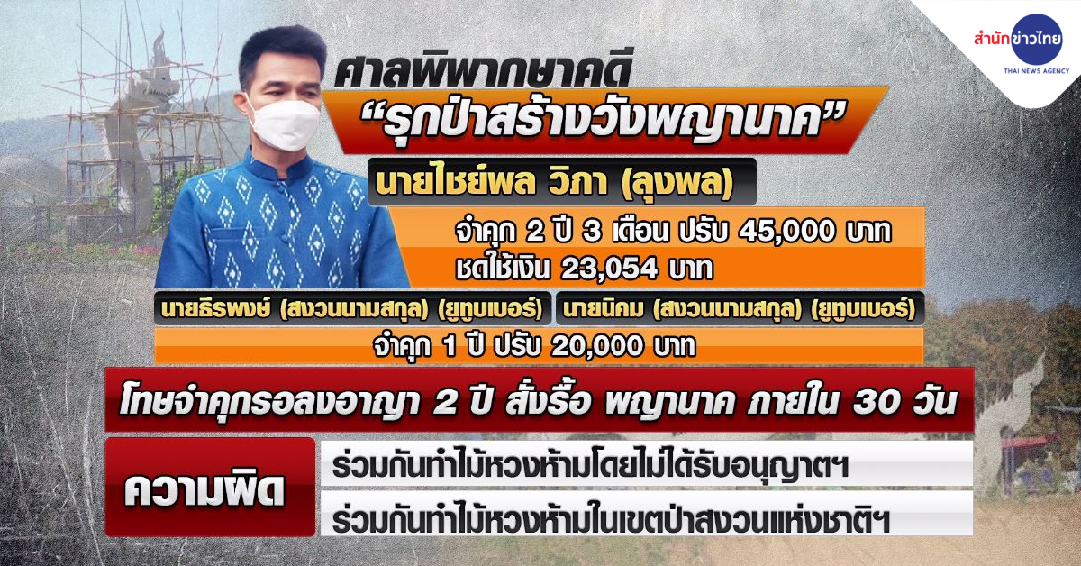 • จำคุก “ลุงพล” 2 ปี 3 เดือน คดีรุกป่าสร้างวังพญานาค