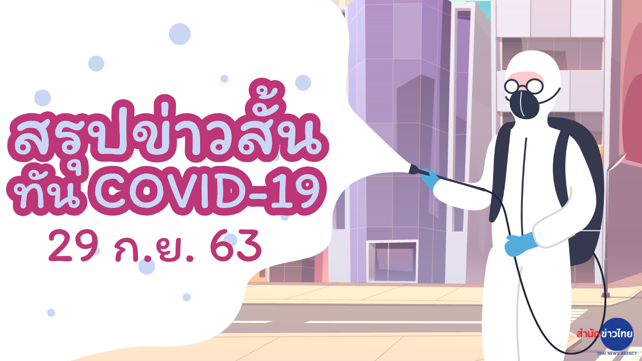 สำนักข่าวไทย 29 ก.ย. 63 –สถานการณ์การติดเชื้อ COVID-19 ประเทศไทย มีผู้ป่วยรายใหม่ 14 ราย ผู้ป่วยยืนยันสะสม 3,559 ราย หายป่วยแล้ว 3,370 ราย เสียชีวิตสะสม 59 ราย