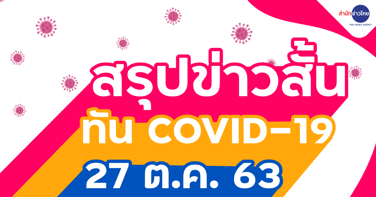 สำนักข่าวไทย 27 ต.ค. 63 – สถานการณ์การติดเชื้อ COVID-19 ประเทศไทย มีผู้ป่วยรายใหม่ 3 ราย ผู้ป่วยยืนยันสะสม 3,746 ราย หายป่วยแล้ว 3,551 ราย เสียชีวิตสะสม 59 ราย