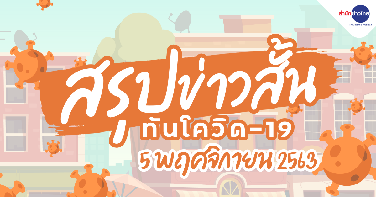 สำนักข่าวไทย 5 พ.ย. 63 – สถานการณ์การติดเชื้อ COVID-19 ประเทศไทย มีผู้ป่วยรายใหม่ 6 ราย ผู้ป่วยยืนยันสะสม 3,810 ราย หายป่วยแล้ว 3,623 ราย เสียชีวิตสะสม 59 ราย