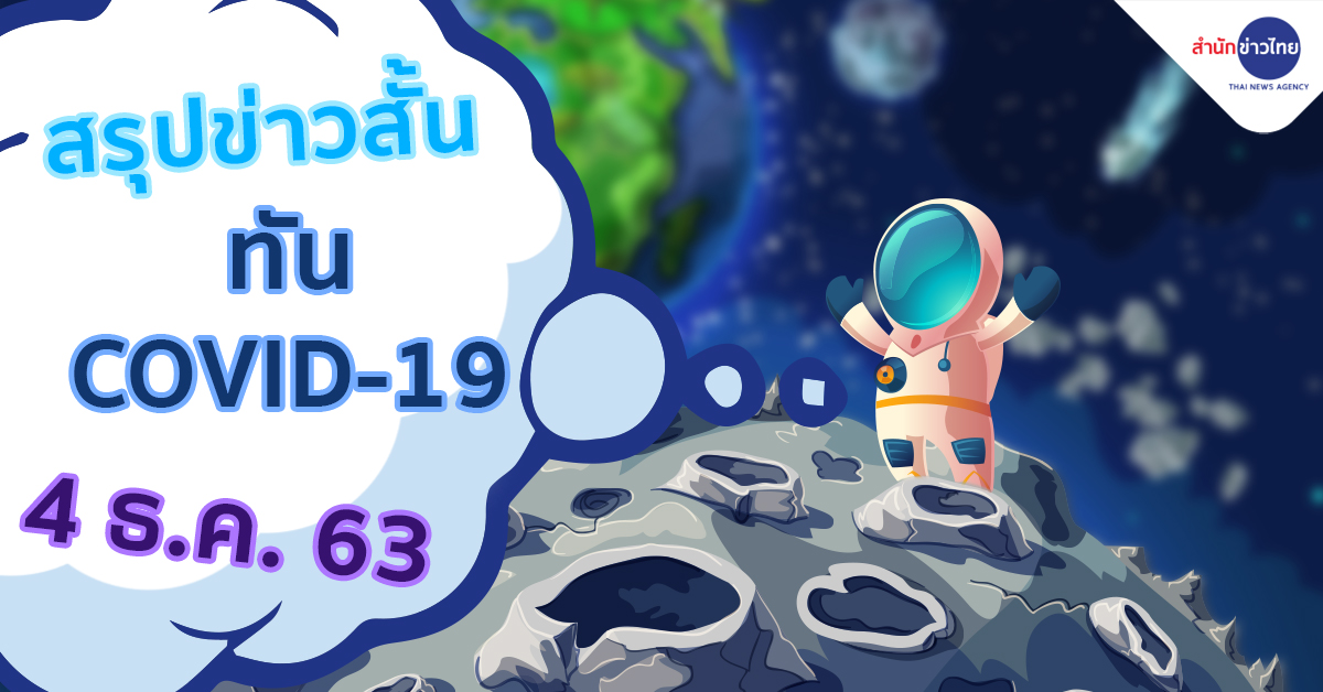 สำนักข่าวไทย 4 ธ.ค. 63 – สถานการณ์การติดเชื้อ COVID-19 ประเทศไทย มีผู้ป่วยรายใหม่ 14 ราย ผู้ป่วยยืนยันสะสม 4,053 ราย หายป่วยแล้ว 3,839 ราย เสียชีวิตสะสม 60 ราย