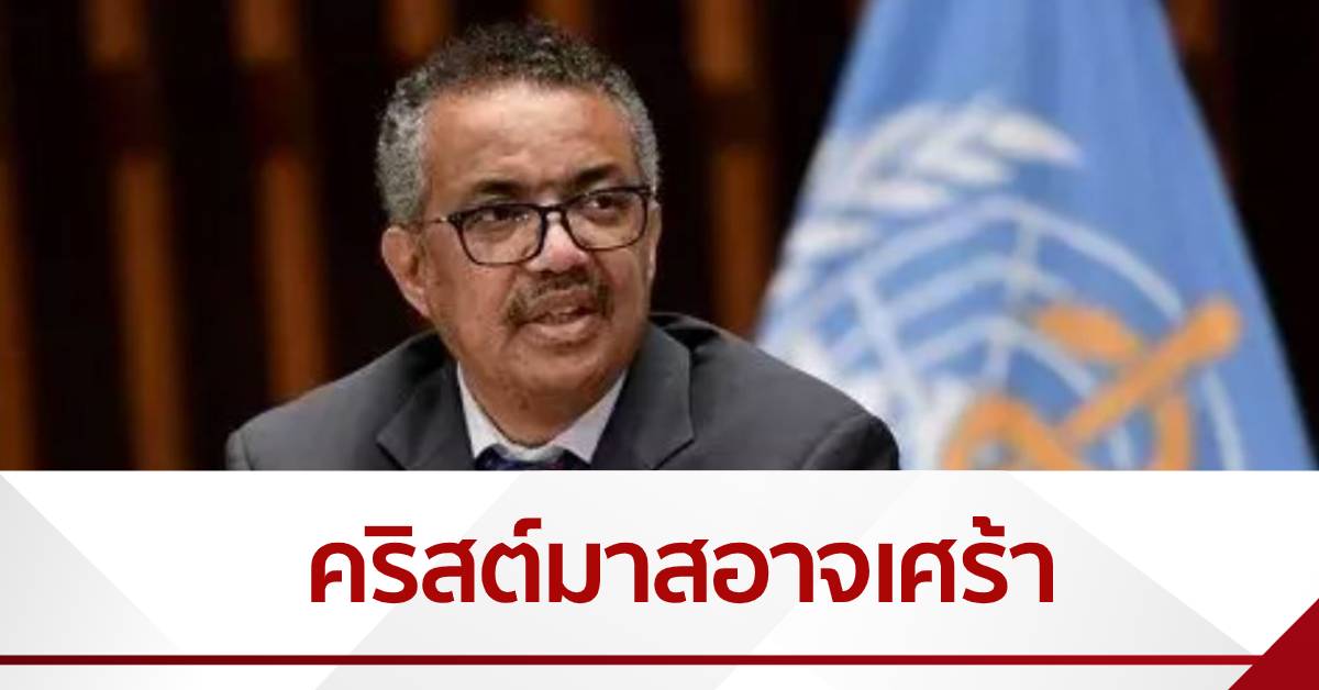 เจนีวา 12 ธ.ค. – องค์การอนามัยโลก กล่าววานนี้ว่า งานฉลองในเทศกาลคริสต์มาสที่กำลังจะมาถึง อาจจะกลายเป็นงานฉลองด้วยความเศร้าทั้งน้ำตา หากประชาชนไม่รักษามาตรการเข้มงวดในการป้องกันการแพร่ระบาดของเชื้อไวรัสโคโรนา 2019 ในช่วงเทศกาลงานฉลองนี้