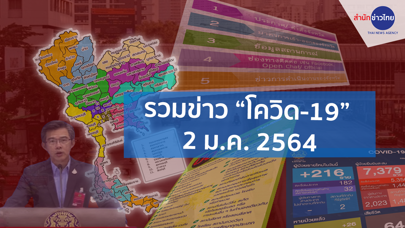 “สำนักข่าวไทย” รวบรวมข่าว สถานการณ์โควิด-19 ที่เกิดขึ้นในวันเสาร์ที่ 2 มกราคม 2564 ให้ผู้อ่านติดตามข่าว สถานการณ์ ความเคลื่อนไหวที่เกี่ยวข้องที่เกิดขึ้นตลอดทั้งวัน