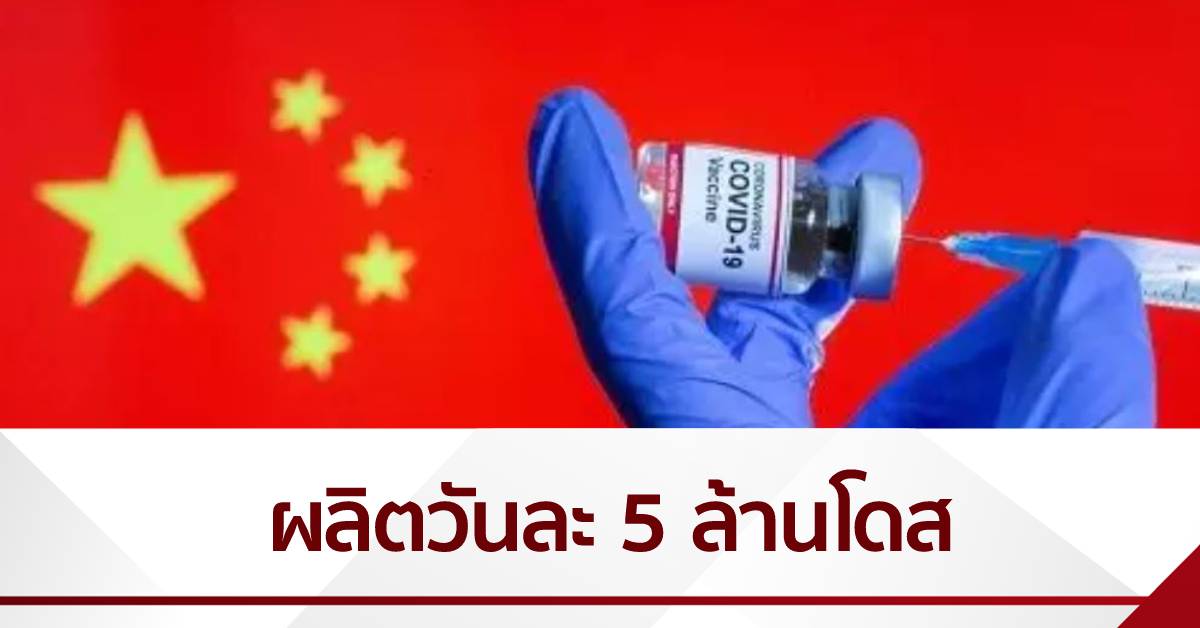 ปักกิ่ง 24 มี.ค. – การผลิตวัคซีนป้องกันการติดเชื้อไวรัสโคโรนา 2019 ของจีนได้เพิ่มขึ้นเป็นวันละ 5 ล้านโดส ซึ่งเพิ่มขึ้นกว่า 3 เท่าจากปริมาณการผลิตรายวันเมื่อวันที่ 1 กุมภาพันธ์ที่ผ่านมาที่ผลิตได้วันละ 1.5 ล้านโดส