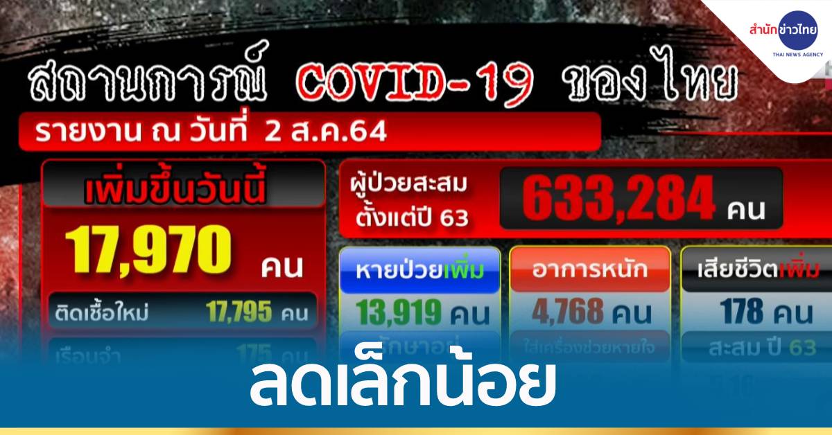 2 ส.ค. – กรมควบคุมโรค กระทรวงสาธารณสุข รายงานตัวเลขผู้ติดเชื้อวันนี้ยังสูงต่อเนื่อง แม้จะลดลงมาบ้างเล็กน้อย แต่ยังคงแตะหลักหมื่นต่อเนื่องเป็นวันที่ 16 แล้ว